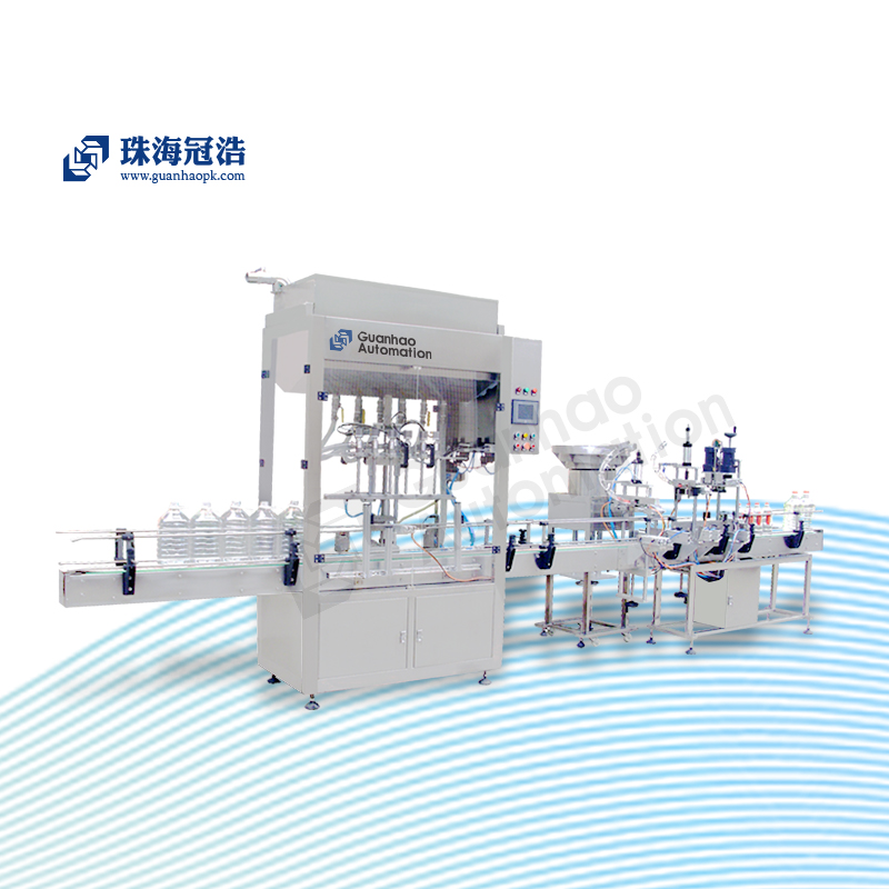 6頭灌裝、壓蓋、旋蓋生產(chǎn)線主要由6頭自流式灌裝機(jī)、壓蓋機(jī)、旋蓋機(jī)組成,主要適用于大瓶物體的自流灌裝。
