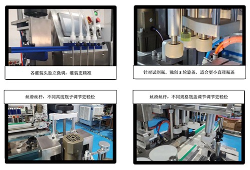 灌裝和旋蓋部分可通過(guò)手柄轉(zhuǎn)盤(pán)直接調(diào)整高度 |